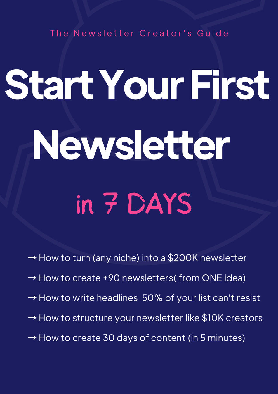 ✓ Day 1: The Profitable Niche Formula That Turned A Python Newsletter Into A $200K/Year✓ Day 2: Why Most Newsletter Offers Fail (And What To Do Instead)✓ Day 3: The 3-Step System That Turns ONE Idea Into 90 Newsletter Topics✓ Day 4: The 4-Headline Templates That Get 40% Open Rates (consistently)✓ Day 5: The 7-Part Structure Behind $10K/Month Newsletters✓ Day 6: The AI System That Turns 1 Newsletter Into 30 Days Of Social Posts✓ Day 7: The Only Number That Predicts Newsletter Success